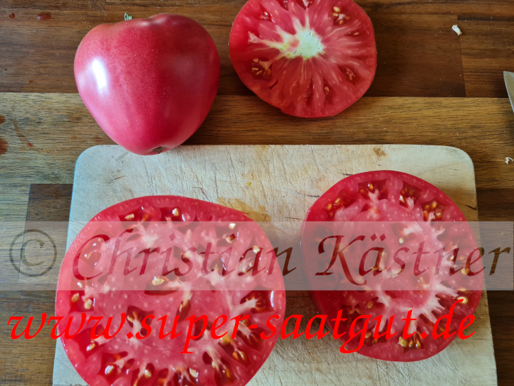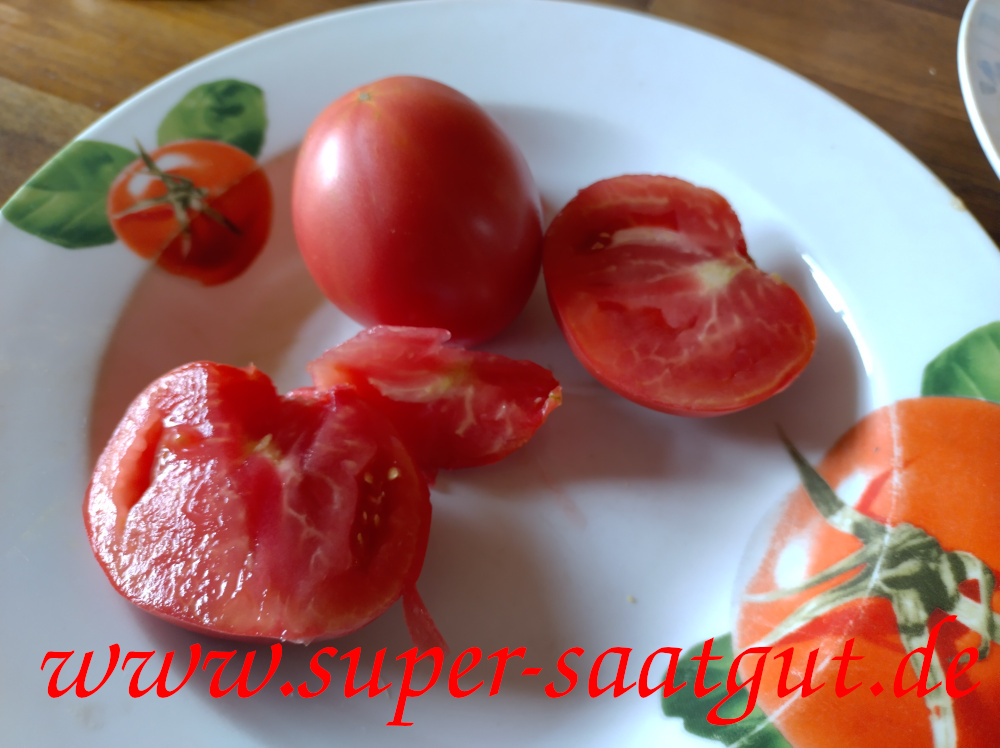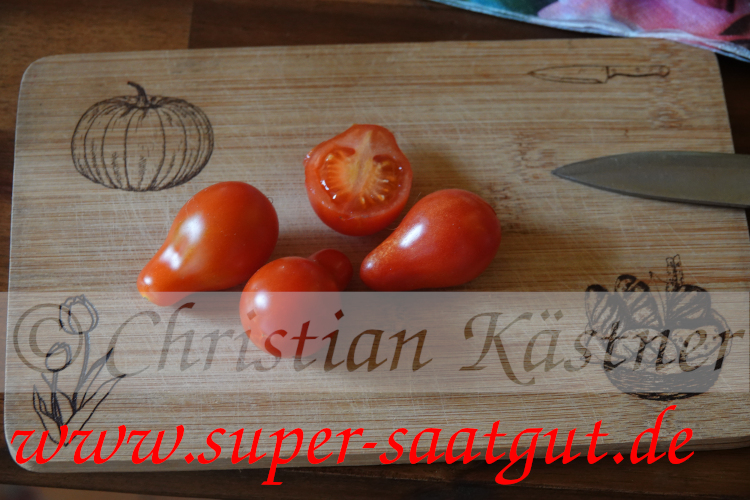 Sehr schöne, leckere Sorte, ideal für Saucen und Suppen. Russische Sorte, die hier zuverlässig ausreift
